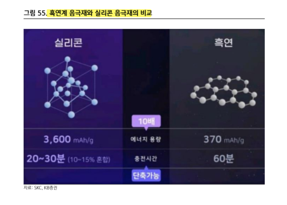 현재 양극재·전해질 기술 발전은 속도 둔화가 뚜렷한 반면, 실리콘 음극재는 “배터리 성능 향상의 마지막 카드”로 평가될 만큼 성장성이 큽니다.
