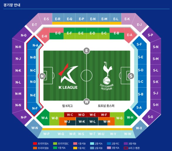 아직 티켓 가격에 대해 공개된 사항은 없습니다. 다만 참고자료로 2022년 서울 월드컵경기장에서 열린 팀k리그vs 토트넘 홋스퍼의 경기티켓 금액을 참고해주세요. 아래의 경기장 위치를 확인하시고, '24년 6월 28일 20시 티켓팅에 성공하시기를 바랍니다.